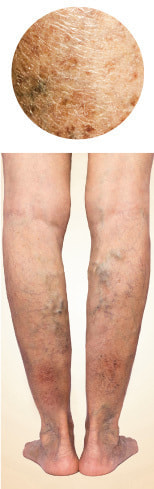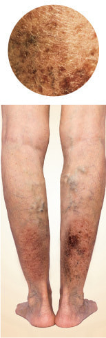 このまま放置していくと、くるぶしが硬くなってきたり(脂肪皮膚硬化症)、色素沈着による黒ずみが現れてきます。更に重症化すると、皮膚に穴があき出血することもあります。